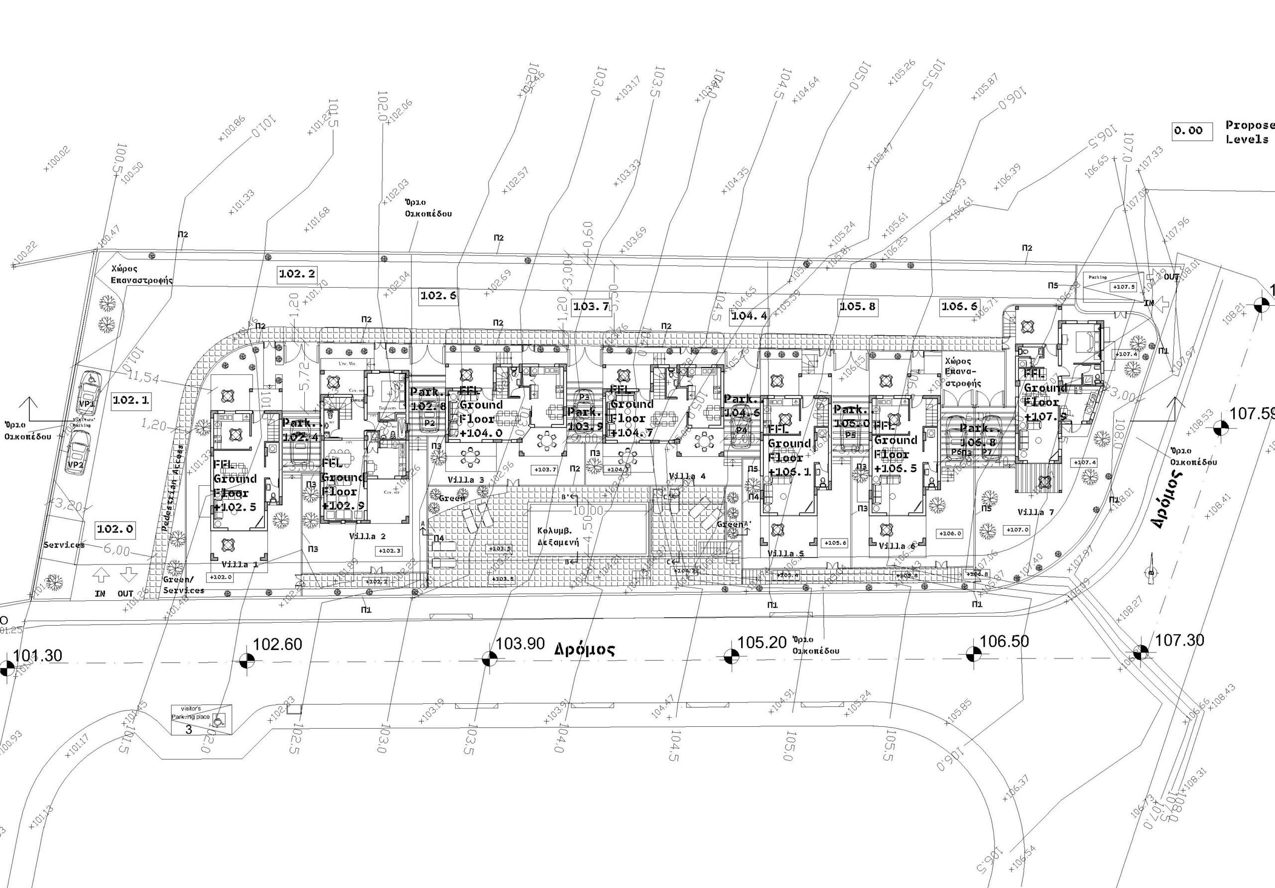Συγκρότημα 7 διώροφων κατοικιών 120 m² με ιδιωτική κοινόχρηστη πισίνα. Τριών υπνοδωματίων (ένα εκ των οποίων en-suite και γκαρνταρόμπα), wc, κουζίνα, τραπεζαρία και καθιστικό. Χώρο στάθμευσης και καλυμμένες βεράντες κ πέργολες.